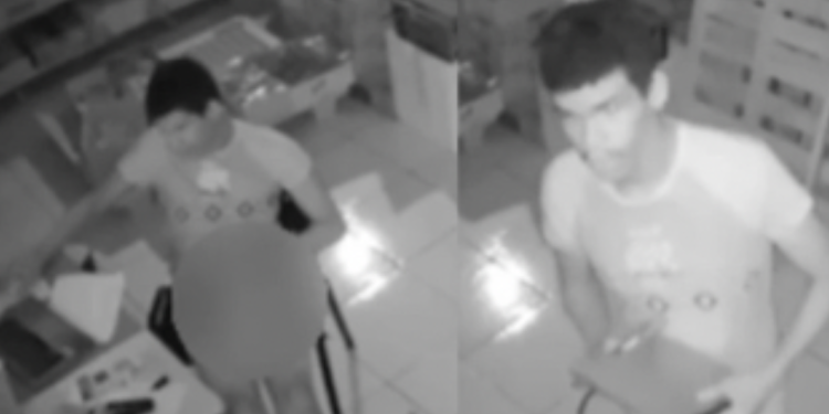 Nas filmagens do circuito interno de segurança, o jovem arromba a janela com um pedaço de madeira. Ele subtraiu dois notebooks.