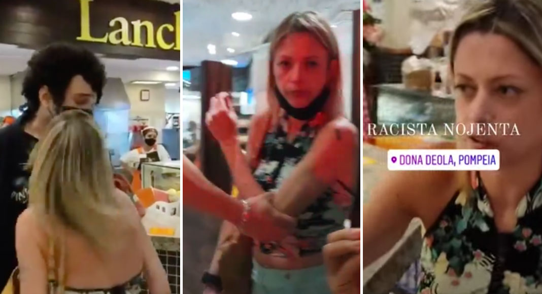 Enquanto um funcionário tenta resolver a confusão, a mulher cita mais falas homofóbicas: “Eu não estou falando p**** nenhuma. Isso aqui é uma padaria gay?”. Ela também foi acusada de declarações transfóbicas e racistas pelos envolvidos.
