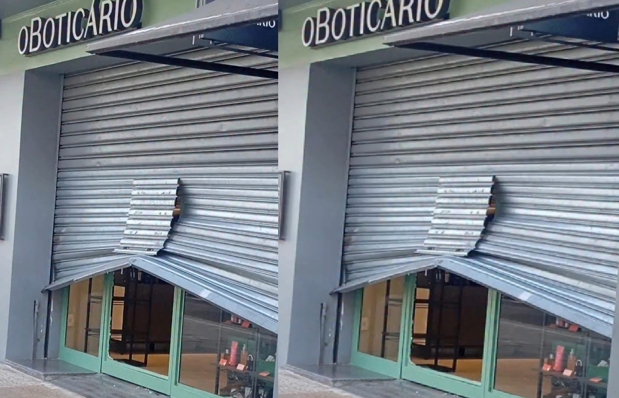 A imagem da porta parcialmente destruída circula nas redes sociais, mas a loja não informou se o prejuízo foi além da entrada. O local é cheio de lojas e muito frequentado todos os dias por clientes.