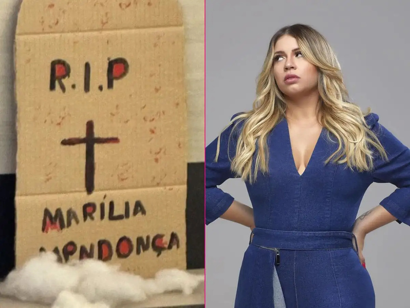 Nas imagens, que foram publicadas nas redes sociais, o nome da cantora aparece escrito em um papelão que imitava uma lápide. Além de Marília, o nome de Michael Jackson também é usado.