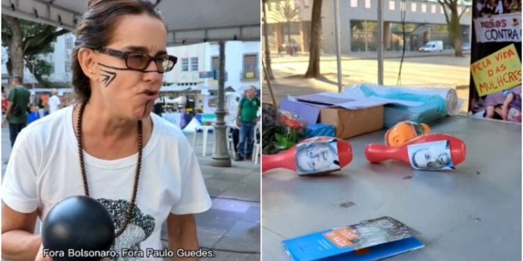 “Fora, Bolsonaro! Fora, Paulo Guedes! Ricardo Salles já caiu, mas deixou ‘os bois’ passando. Seus m*rdas!”, dispara Lucélia no vídeo, antes de atirar a bola de boliche.