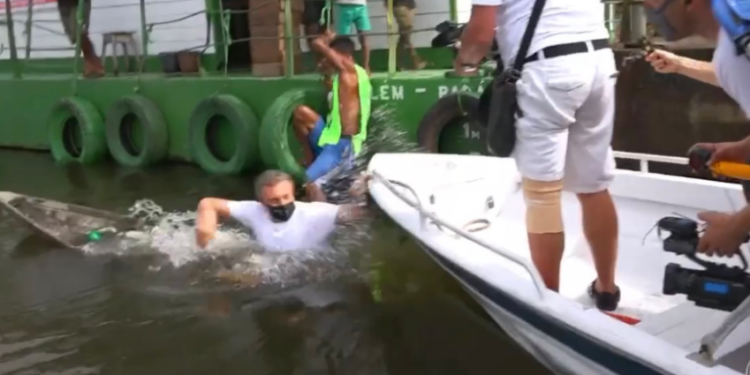 Ao entrar na canoa, o comunicador levou um susto porque ela começou a afundar e ele teve que nadar para outra embarcação próxima. O apresentador passa bem e providenciou um motor novo para a canoa do ribeirinho.