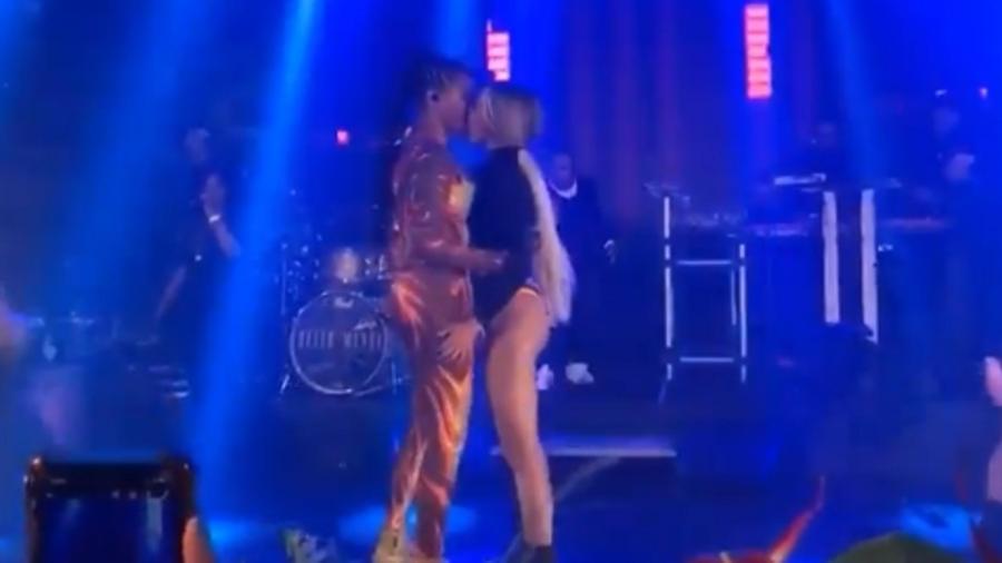 Rio de Janeiro| Durante um show realizado nesta sexta-feira (8), no Copacabana Palace, para os convidados do Baile da Vogue, a cantora Ludmilla e a companheira, Bruna, protagonizaram um beijão no palco, onde o público foi à loucura.