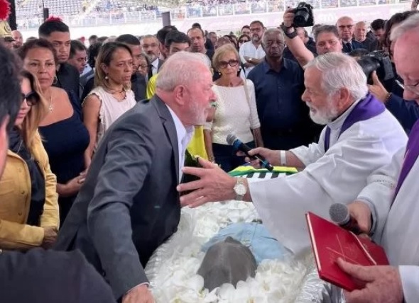 SANTOS – Um gesto de humanidade do presidente Lula (PT) marcou a terça-feira (3), durante o velório de Pelé, em Santos. O presidente chegou de helicóptero a Santos e foi direto para a Vila Belmiro, onde o jogador foi velado e será sepultado ainda hoje.