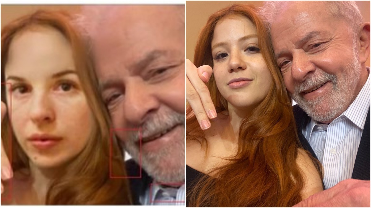 A imagem é uma montagem feita com base em um registro do petista junto com a influenciadora mineira Laura Sabino. A própria jovem desmentiu o caso em suas redes sociais, nesta quinta-feira (28), e mostrou a foto original ao lado de Lula.