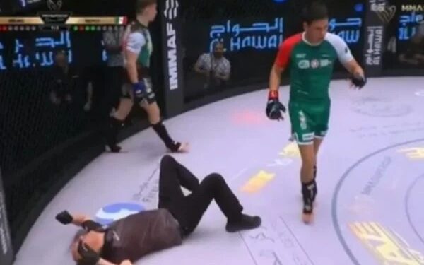 MÉXICO | O duelo foi entre México e Irlanda, válido pela Supercopa de MMA, mas não foram só os lutadores que participaram do combate. Quando um atleta mexicano tentou desferir um chute alto no adversário, ele acabou acertando o árbitro Scott Marhardt, que caiu nocauteado.