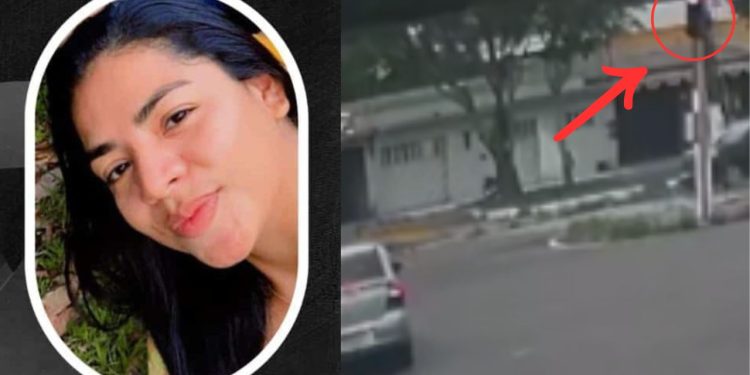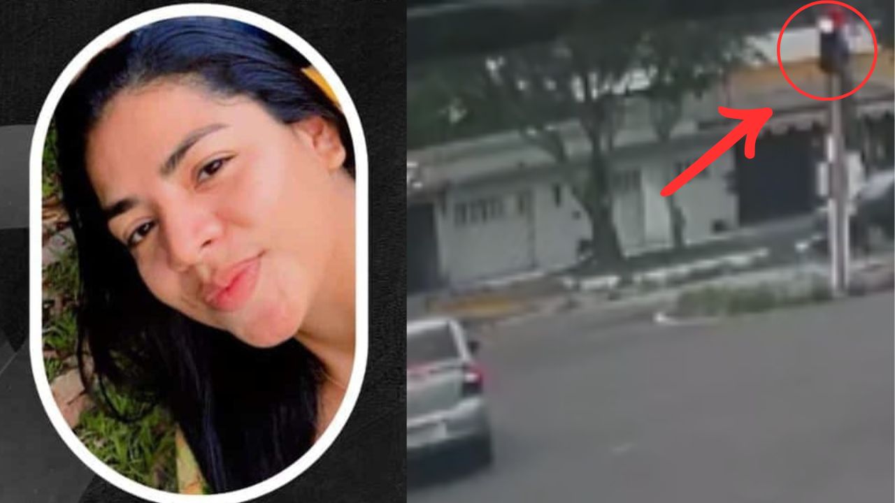 A vítima estava na garupa da moto do namorado, quando o motorista avançou o sinal e atingiu o casal. O momento foi registrado por uma câmera de segurança no último domingo (24).