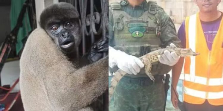 uma preguiça, um macaco-barrigudo e um jacaré. Na tarde de quinta-feira, os policiais militares do BPAmb atenderam a uma chamada dos residentes da avenida Guaranás, no bairro Cidade Nova, onde resgataram uma preguiça. Posteriormente, o animal foi levado a uma área de mata próxima para ser reintegrado ao seu ambiente natural. Na manhã de sexta-feira, após receberem uma denúncia, a equipe do Batalhão Ambiental resgatou um macaco-barrigudo ferido no bairro Coroado.