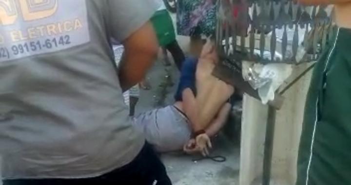 O homem só não foi brutalmente agredido porque uma mulher se colocou na frente dele, e alegou ser sua mãe, impedindo que populares avançassem no rapaz.