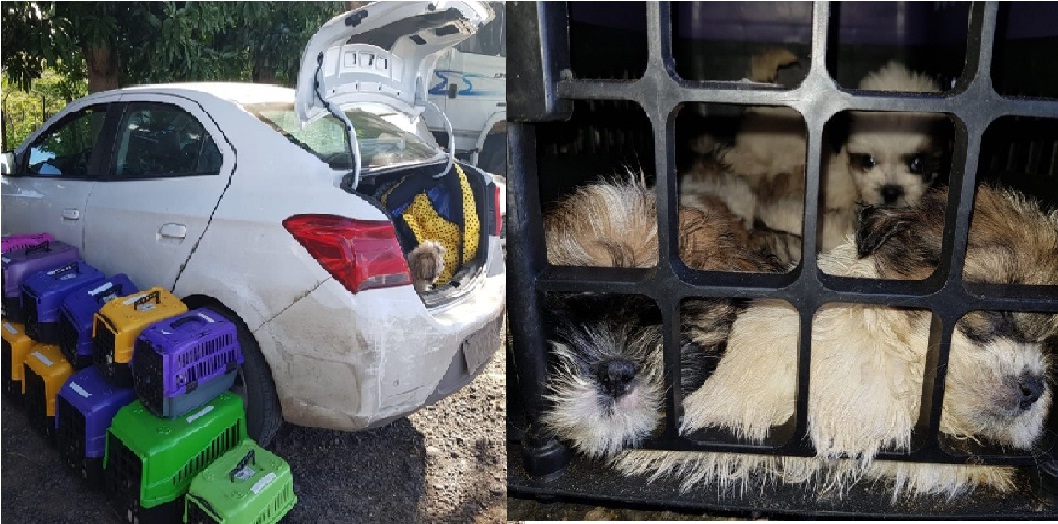 Os agentes federais encontraram 63 filhotes de cachorro, todos da raça Shih-tzu, amontoados em 13 caixas plásticas e uma de papelão. As caixas com os filhotes estavam distribuídas no banco dianteiro, banco traseiro e porta-malas do veículos. Eles estavam debilitados, aparentavam desidratação e fraqueza