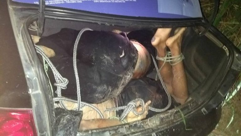 Manaus – Dois corpos foram encontrados no porta-malas de um veículo de passeio, na noite desta terça-feira (18), no ramal do Ipiranga, próximo ao ramal do Brasileirinho, na Zona Leste de Manaus. As vítimas, possivelmente do sexo masculino, estavam com as mãos e os pés amarrados com cordas. Com a divulgação das mortes, totalizam cinco homicídios no período da tarde à noite de hoje na capital amazonense.