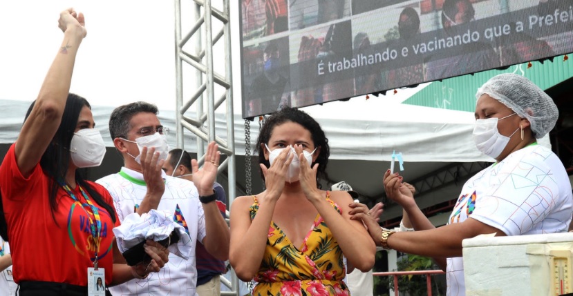 Manaus, AM – O prefeito David Almeida anunciou, às 16h deste sábado, 19/6, a marca de 1 milhão de doses de vacinas contra a Covid-19 aplicadas nas pessoas dos grupos prioritários e população geral. O chefe do Executivo municipal fez questão de acompanhar a “virada” do Vacinômetro, no ponto que funciona no Centro Cultural dos Povos da Amazônia (CCPA), na zona Sul. No início da tarde, a prefeitura anunciou a antecipação para 34 anos do público que poderia ser vacinado. Foram aplicadas mais de 30 mil doses em menos de nove horas de atendimento durante a intensificação da vacinação.