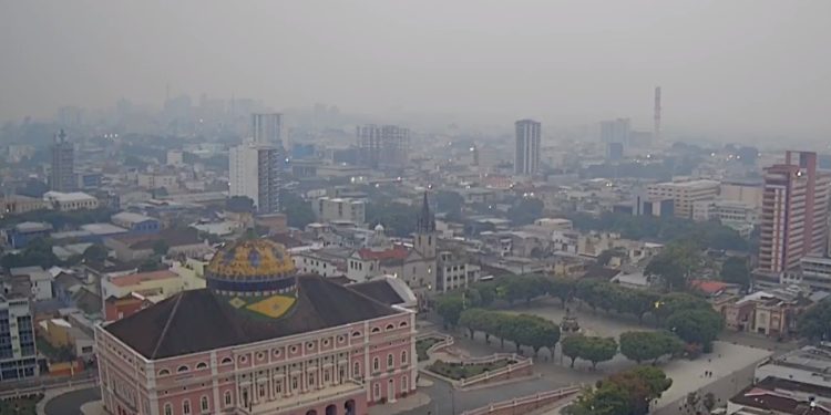 MANAUS – A fumaça que voltou a encobrir Manaus desde domingo (29) escondeu a cidade nesta terça-feira, última dia do mês de outubro. A qualidade do ar na cidade voltou ao nível crítico, com danos à saúde. Neste momento, os 62 municípios do Amazonas estão em situação de emergência ambiental, vítimas da seca, estiagem e das queimadas.