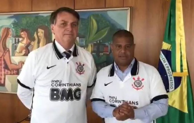 BRASÍLIA | O ex-jogador Marcelinho Carioca se reuniu nesta quarta-feira, 29, com o presidente da República, Jair Bolsonaro, no Palácio do Planalto em Brasília. No encontro, o craque deu uma camisa do Timão ao presidente, que vestiu o uniforme – Bolsonaro é palmeirense e já havia se negado a vestir a camiseta alvinegra outras vezes.