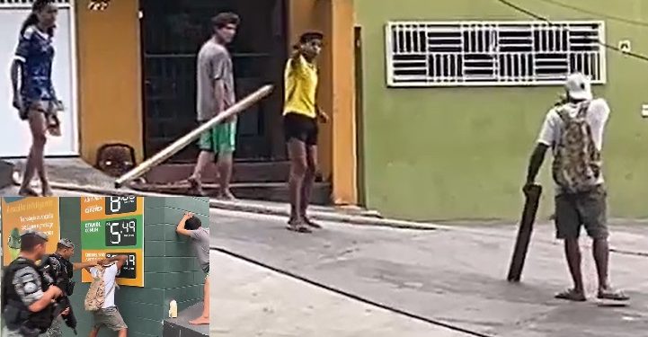 No momento da briga a Rocam passou e mandou os dois baixarem os pedaços de pau. “Eu sou casada, esse bicho colocou pra cima de mim”, disse a mulher.