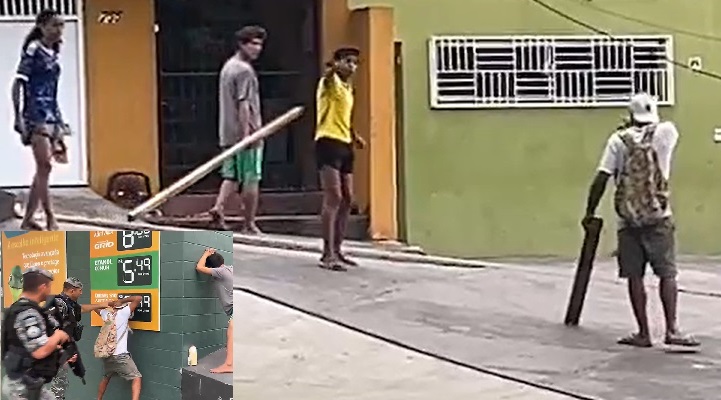 A confusão acabou com os dois na parede. Por sorte ninguém se feriu e a Rocam despachou os valentões. Resta saber se eles não vão se encontrar na rua nos próximos dias e voltar a brigar.