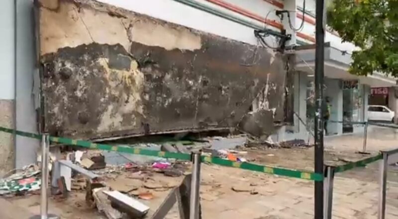 A Defesa Civil foi acionada para verificar a estrutura do prédio, que é antigo. Como o estabelecimento estava fechado, ninguém se feriu.