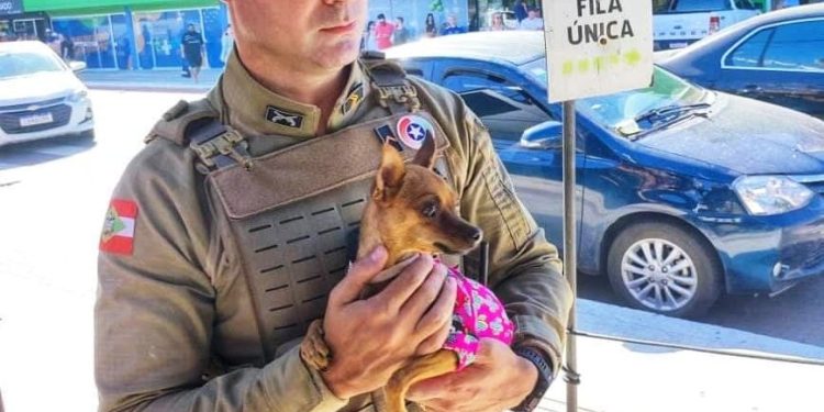Na tarde da última sexta-feira (27), policiais resgataram um cachorro que estava preso no interior de um veículo, tentando se proteger do sol, debaixo do banco. O caso aconteceu na avenida Normando Tedesco, em Balneário Camboriú, Santa Catarina.
