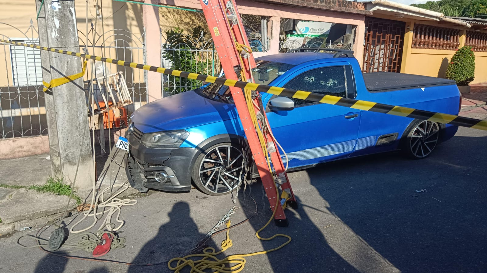 Uma equipe da Amazonas Energia fazia um serviço em poste e que foi atingido, após Alexandre perder o controle do veículo, uma Saveiro azul, rebaixada e placas PHB3J76.