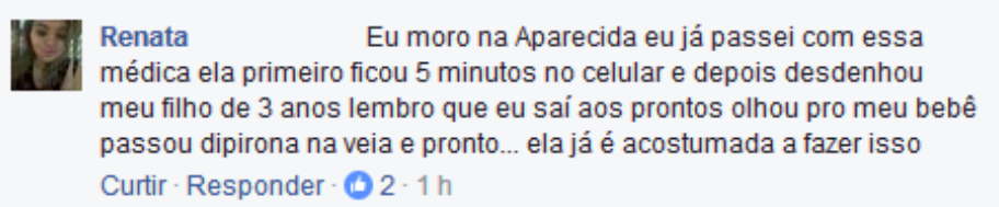 Nas redes sociais outros pacientes reclamaram do atendimento da pediatra