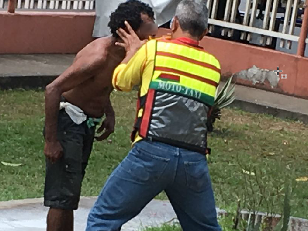 O mototaxista disse que tem uma amizade com o morador de rua e por isso sempre busca auxiliá-lo na banho, a escovar os dentes e fazer a barba. De acordo com ele, o morador de rua é conhecido dos mototaxistas há mais de um ano, pois está sempre circulando em frente ao HE.