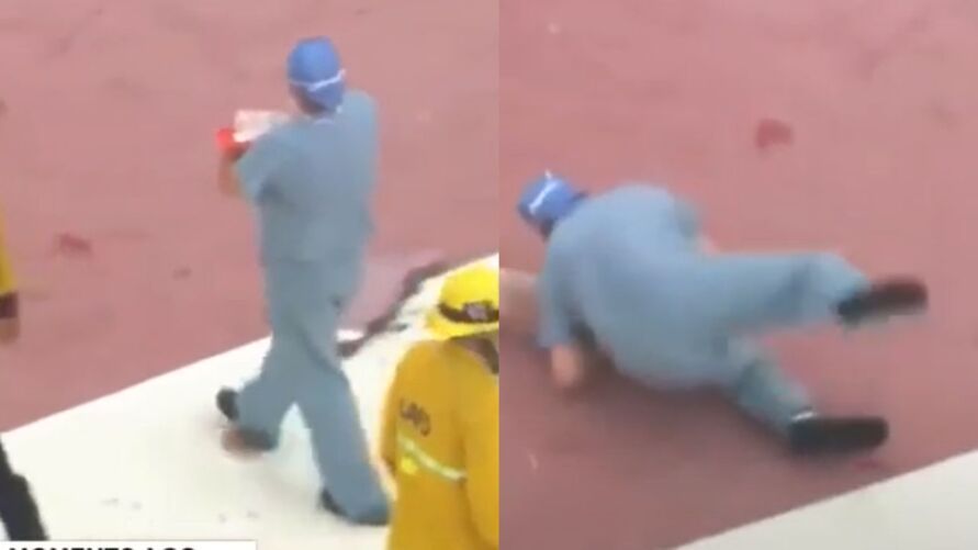 Apesar do acidente, que poderia ter sido fatal, o que chamou atenção foi um médico que, ao carregar o coração que estava dentro do helicóptero, escorrega e deixa o órgão cair no chão.