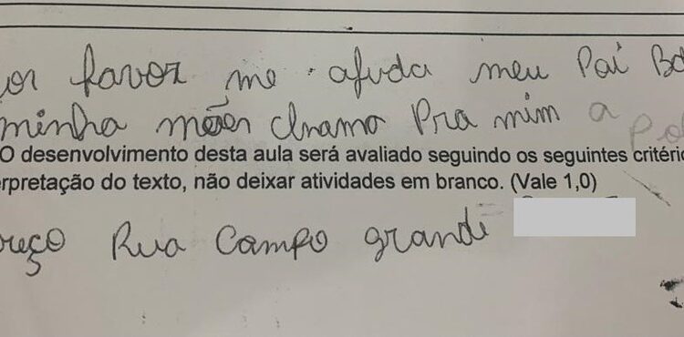 “Por favor, me ajuda. Meu pai bate na minha mãe, chama pra mim a polícia“, dizia o recado deixado na prova para a professora. A foto com o recado viralizou nas redes sociais nesta semana.