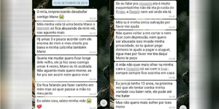 São Paulo – Uma menina de 13 anos pediu socorro à irmã pelo WhatsApp após ser estuprada pelo pai, de 47 anos. A irmã da vítima, Mila Christiã Rodrigues, de 21 anos, relatou que a adolescente sofreu abusos sexuais diversas vezes por parte do suspeito.