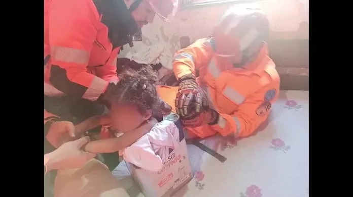 Os bombeiros fizeram a retirada da criança sem nenhum ferimento. Ainda segundo os militares que atenderam a ocorrência, a menina saiu brincando.