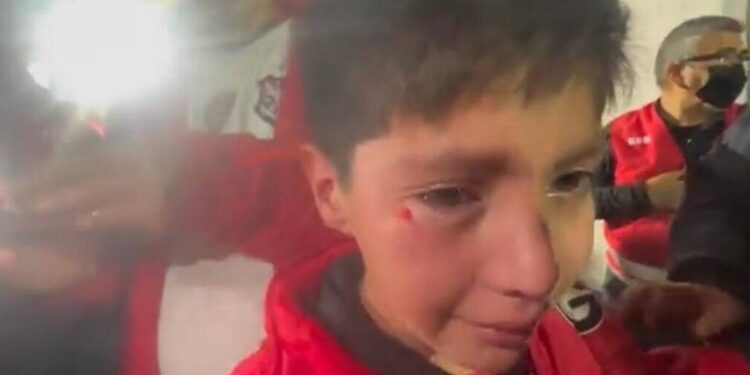 CHILE | O pequeno Thiago Sepúlveda, de 10 anos, foi atingido no rosto por um sinalizador, lançado por um torcedor chileno no jogo de ontem, entre Flamengo e Universidad Católica.