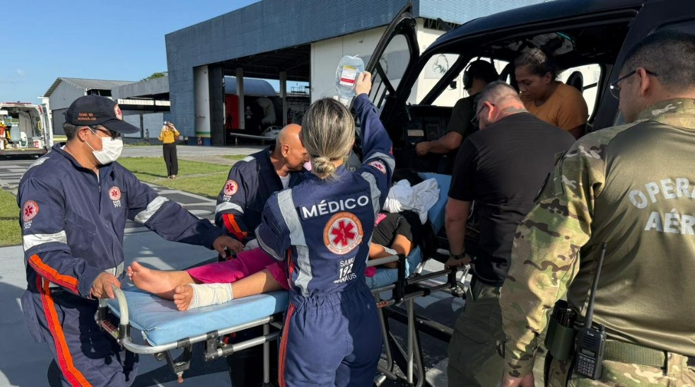 De acordo com a médica do Serviço de Atendimento Móvel de Urgência (Samu), Larissa Câmara, o primeiro atendimento foi realizado de imediato na comunidade. “Ela ficou estável, chegou bem chorosa, com dor e foi aplicada a medicação e, posteriormente, o acesso venoso. Agora ela será encaminhada para a Fundação de Medicina Tropical”, disse.