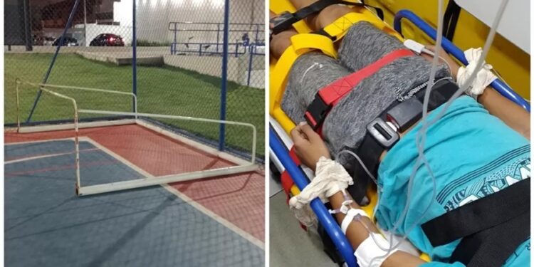 SÃO PAULO | Um menino de 12 anos se feriu em uma praça na cidade de Peruíbe, litoral de São Paulo, após uma trave de futebol soltar-se do chão e cair sobre ele.