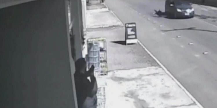 No vídeo, é possível ver o momento exato em que a criança aparece sendo arremessada para fora do veículo no momento em que ele fazia uma curva. Ao perceber a queda, a mãe do garoto sai do carro, sem puxar o freio de mão.