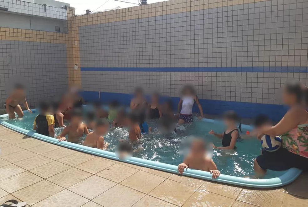 Ao g1, a polícia informou que analisou as câmeras de monitoramento da unidade, e que havia 19 crianças na área recreativa. A piscina, com 70 centímetros de profundidade, era usada pelos alunos do 5º ano, e estava sendo supervisionada por uma professora. Ainda de acordo com a Polícia Civil, nas imagens, é possível ver que o menino estava pulando na água, vai até a borda, e de repente afunda.