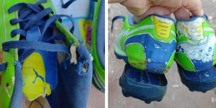 A mãe do menino, que é o mais velho de quatro irmãos, chegou a postar uma foto do presente ainda fechado, celebrando o sonho da criança. Porém, ao abrirem a caixa, a frustração: a chuteira estava em péssimas condições de uso, deixando o menino decepcionado.