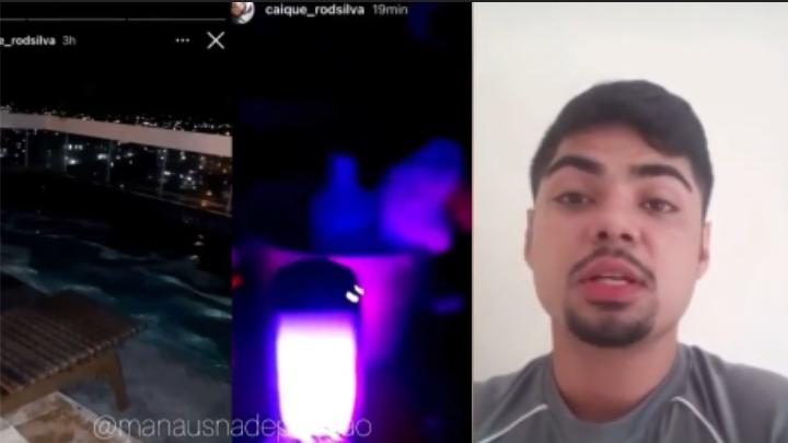 Na noite desta sexta-feira (15), o influenciador digital Caíque Rodrigues, decidiu realizar uma festa na cobertura de um dos shoppings de Manaus, desrespeitando o toque de recolher e as vítimas da covid-19, que lutam pela vida diariamente nos hospitais de Manaus. Nas imagens divulgadas em suas próprias redes sociais, Caíque mostrou uma mesa repleta de bebidas, enquanto uma música nas alturas toca no local. Veja;