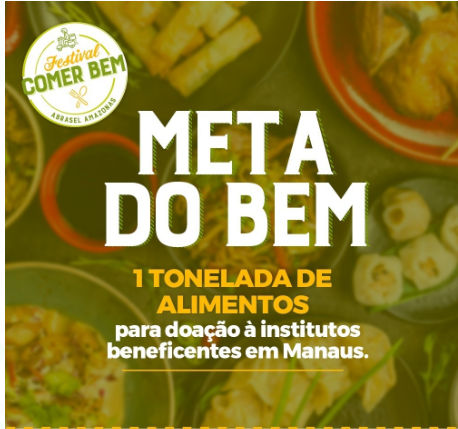 MANAUS-AM | A Abrasel no Amazonas realizou o festival “Comer Bem Abrasel”, nos meses de maio e junho, como forma de ajudar o setor de alimentação fora do lar e em conta partida também lançou a Meta do Bem, com o objetivo de arrecadar 1 tonelada de alimentos para serem doadas a instituições.