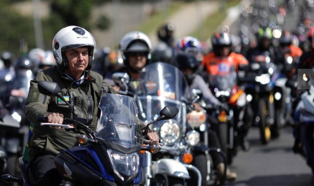 De jaqueta e capacete onde está escrito “presidente Bolsonaro”, ele acenou para manifestantes vestidos de verde e amarelo gritando “mito”. “Pessoal, começando nosso passeio de motocicleta. Muito obrigado pelo convite, pela liberdade, pela democracia e por Deus”, disse, antes de começar o trajeto, em transmissão em suas redes sociais.