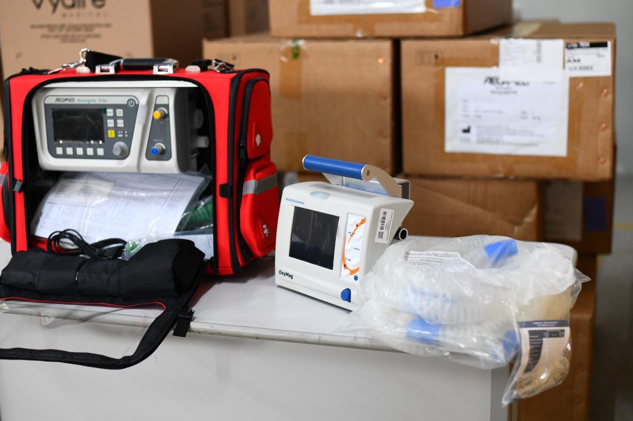 A carga inclui mais de 244 mil unidades de Equipamentos de Proteção Individual (EPIs), 25 respiradores do tipo invasivo, usados em leitos de UTI, e 20 respiradores de transporte, destinados a cuidados intermediários e transferências hospitalares.