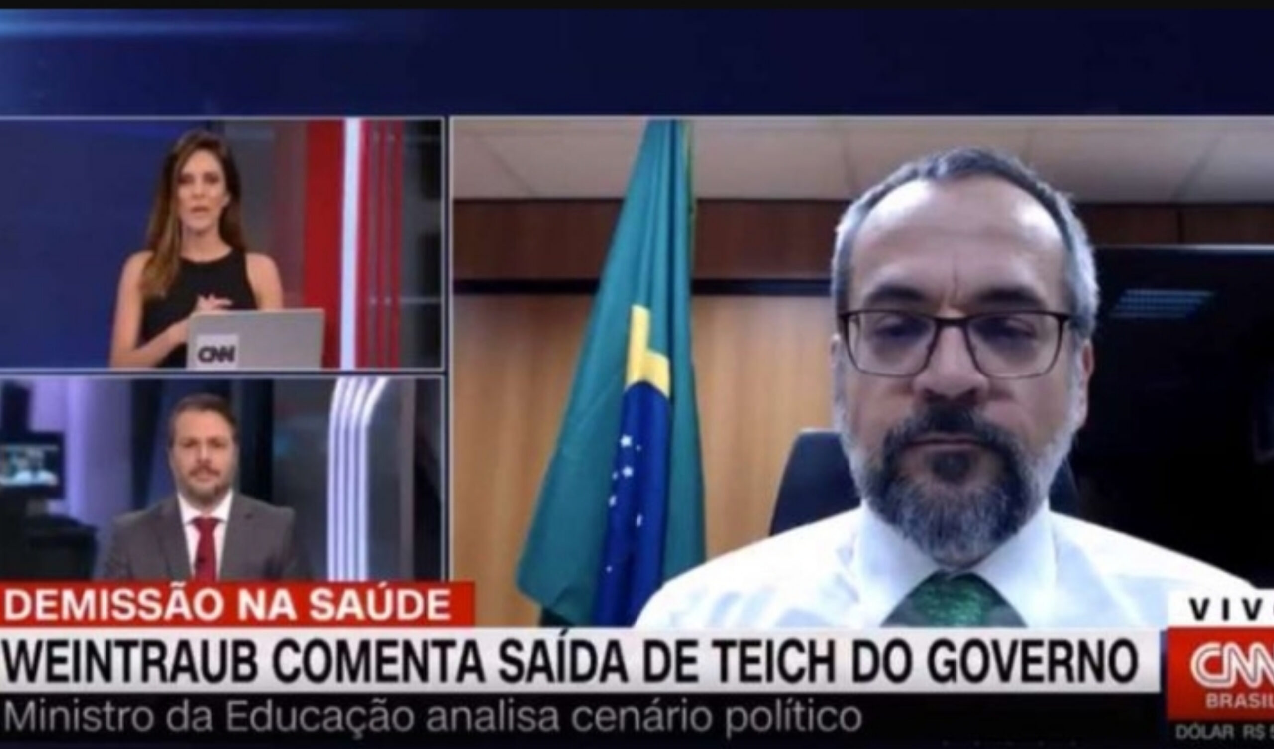A apresentadora insistiu para que o ministro da Educação falasse sobre a saída de Teich da pasta. “Nós estamos perguntando sobre um colega do senhor, mas se o senhor não quiser responder o que o Brasil inteiro gostaria de saber, fique à vontade”.