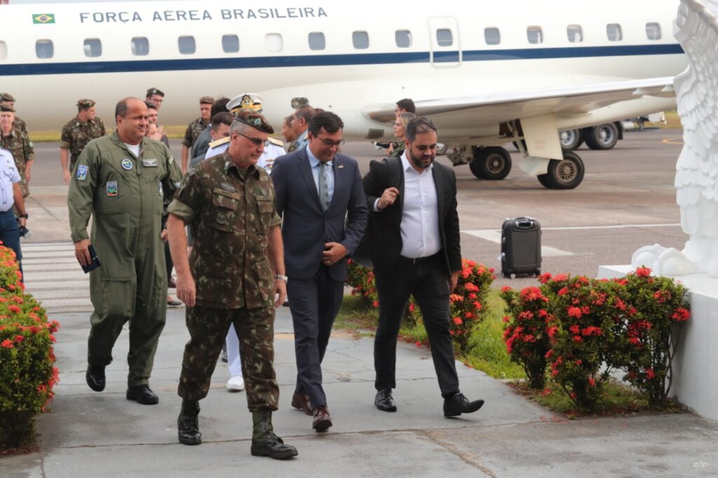 Manaus – O governador Wilson Lima foi até a Base Aérea de Manaus, na zona sul, na tarde desta segunda-feira (02/09), receber a comitiva interministerial que vai reunir com os governadores dos estados da Amazônia Ocidental: Acre, Amazonas, Rondônia e Roraima. A reunião será realizada amanhã (03/08), às 10h, na sede do Governo do Amazonas, bairro Compensa II, zona oeste da capital.