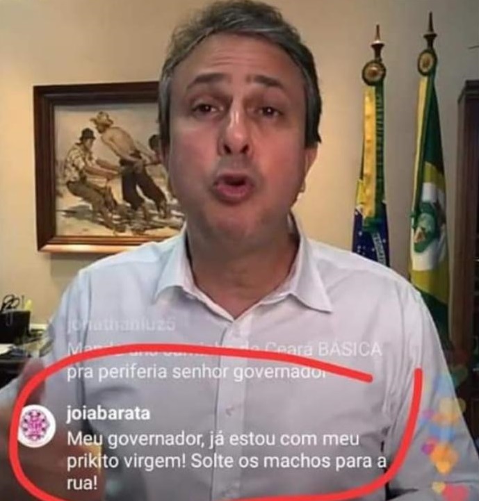 FORTALEZA (CE) – O governador do Ceará Camilo Santana recebeu um pedido inusitado enquanto fala sobre as meidades de restrição. Não foi um pedido de leitos ou abertura do comércio. Mas o pedido para que libere os homens cearenses, pois a seguidora disse que já estava com o “pirikito virgem”. Evidentemente o pedido não passou em branco e foi notado pelos seguidoes do chefe cearense.