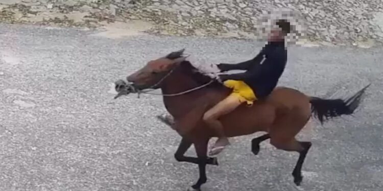 FORTALEZA – CE | Um homem montado em um cavalo assaltou várias pessoas em uma parada de ônibus nesta quinta-feira (26) na Rua José Rangel, no Bairro Papicu, em Fortaleza. O criminoso estava armado e aparece em cima do cavalo em imagens de uma câmera de segurança da rua, que flagrou o momento.