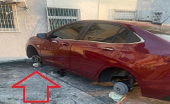 MANAUS, AM – Uma moradora do conjunto Eldorado, no bairro Parque Dez, gravou um vídeo nesta sexta-feira (8), após acordar e ver que o carro estava sem os quatro pneus. O Onix, vermelho, placa QZY 5J14, foi deixado em cima de pedras pelos ladrões.