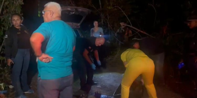 A polícia chegou ao local para averiguar a denúncia e encontrou o cadáver na mala; a vítima foi morta com um tiro na cabeça.
