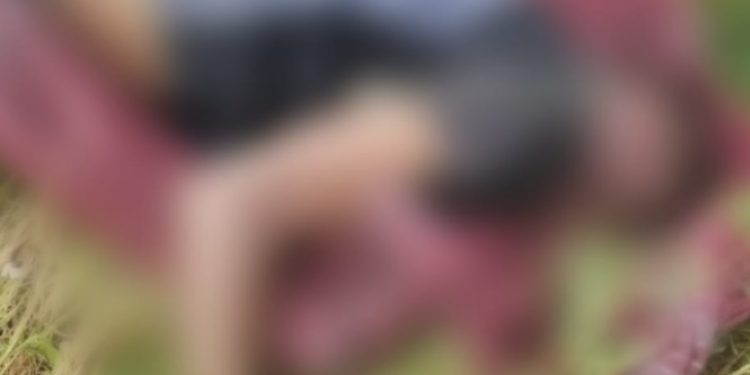 Populares chamaram a polícia ao encontrarem o cadáver. O homem está de bermuda preta, camisa preta com detalhes cinza e tem sinais de estrangulamento.