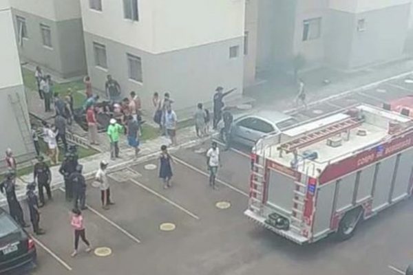 De acordo com moradores, uma mulher e três crianças estavam presas no apartamento e a única saída foi posicionar um colchão e pedir que elas pulassem. A mulher que aparece no vídeo, acaba jogando a neta de 11 meses, e outras duas meninas de 5 e 7 anos e depois se joga, do apartamento em chamas. Nenhuma das vítimas teve ferimentos graves.