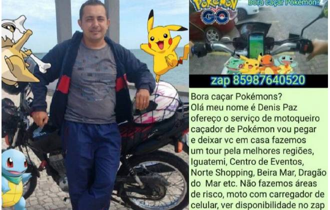São Paulo – Capturar pokémons não é apenas sinônimo de diversão – pelo menos não para o motoboy Denis Paz, 32 anos. Antes mesmo do lançamento de Pokémon Go no Brasil, o cearense já via no jogo uma oportunidade de trabalho. Minutos depois que o aplicativo foi disponibilizado nas lojas brasileiras, Denis publicou no Facebook e em grupos de WhatsApp um anúncio oferecendo o serviço como “motoqueiro caçador de pokémons”. A novidade caiu no gosto dos jogadores e já está sendo divulgada em todo o país.