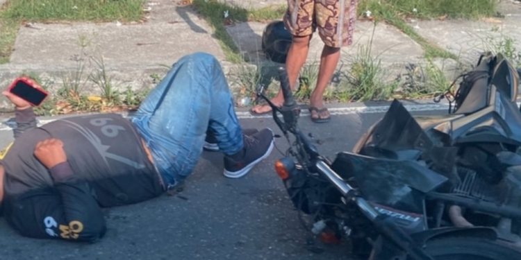 MANAUS, AM – Mais uma acidente envolvendo motos de APP foi registrado em Manaus nesta quarta-feira (13), desta vez na rua Professora Cacilda Pedroso, Conjunto Juruá, no Alvorada. O motorista se chocou com um Ônix no sentido bairro-Centro, e acabou arremessado ao chão. A imagem dele agarrado ao celular e desnorteado caiu nas redes sociais logo após o choque.