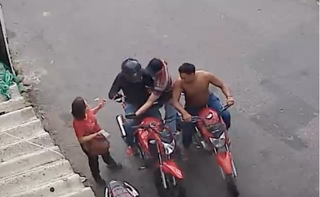 Os suspeitos chegaram em outra motocicleta e abordaram o trabalhador em plena luz do dia. O criminoso que estava na garupa levou os celulares das vítimas. Ele também tira a chave da ignição e leva embora.